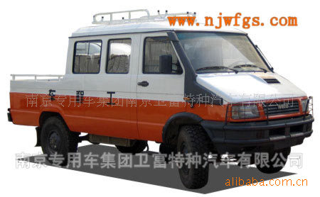 越野工程车采用军方使用的高品质越野底盘,经专业设计、生产而成。已通过国家部门检测,有国家公告。该车性能卓越、底盘高、通过性好。