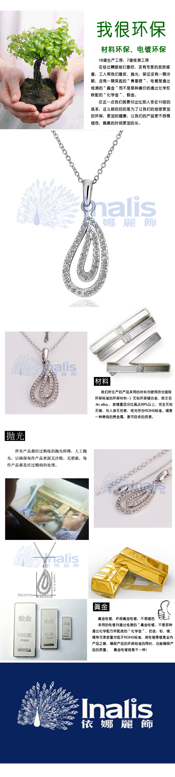 产品材质:环保锡合金,符合国际ROHS认证无铅无镍 防过敏 电镀真金保护,刻有18KRGP,镶钳捷克钻、莱菌石-Rhinestone Crystal