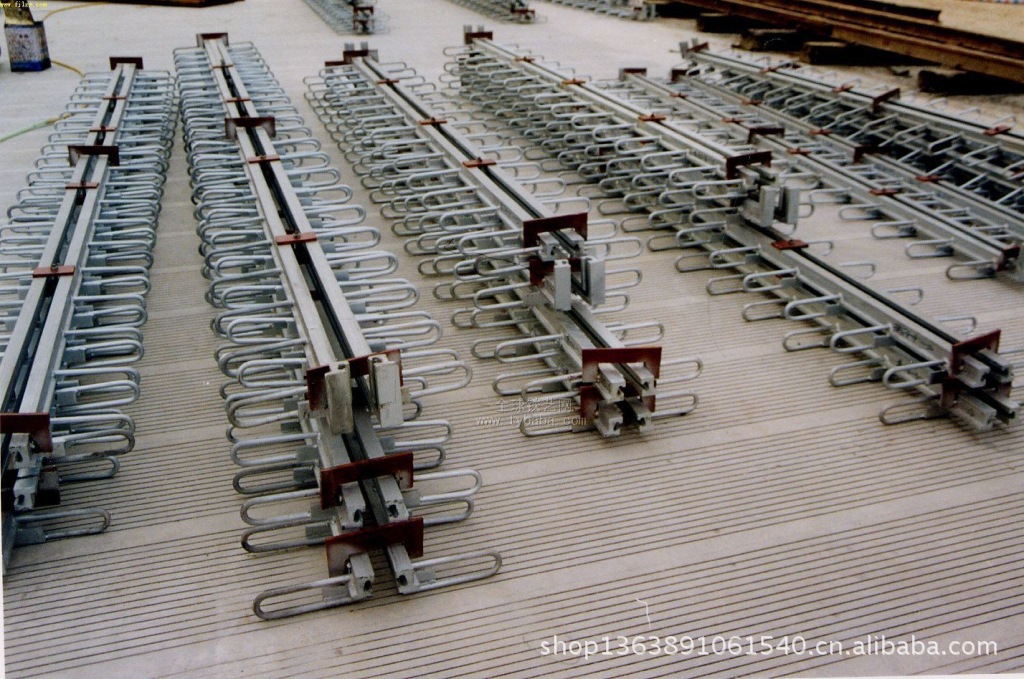 1伸缩装置因受运输长度限制,可分段制造,现场拼接。存放在工地的伸缩装置应平行放置,不得交叉堆放,以防变形。