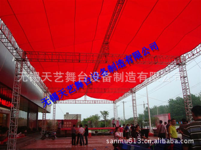 无锡天艺舞台设备制造有限公司是一家经过工商认证的有限责任公司,专业生产舞台,桁架,铝合金桁架,铝合金舞台,快装专利舞台,脚手架,灯光架,雷亚架,折叠舞台,玻璃舞台,合唱台等各种展览器材的制造研发和销售。公司位于国家级经济开发区 ,芙蓉工业园区A区蓉洋三路 32-1号,无锡东出口处8公里即可到公司,东临上海、西靠南京、北枕长江;周边与江阴、张家港、常熟等国家卫生城市紧邻,交通便捷、人杰地灵。 公司目前的● “三个最” -----最响品牌无锡天艺公司在中国网络媒体投放的广告费用10万余元,覆盖全国各个地方,产品规格齐全,量大销售,价格优惠,产品推广等灯的营销网略使天艺的市场占有率高达32%,现有逾千家客户,规模庞大的营销队伍,产品销售遍布全中国。目前江苏最大规模的拥有世界上最先进的设备流水线式的生产模式,是目前江浙沪最大规模的生产厂家之一,生产能力桁架日均产量超过250米,舞台日产量达250平方,浪莎拥有占地5000平米的厂房,集设计、开发、生产、销售于一体,是目前世界上规模最大的舞台桁架生产企业,现货单位。最强实力天艺公司凭借最现代化的管理优势,实现了生产成本的最低化,创造了传媒广电行业效益最好局面,一直雄居行业实力榜首,独占鳌头。最多品种天艺产品覆盖百余种大类上千个品种,是行业品种最多,规格最齐全的企业。森科雄厚的开发实力,每年都能有2-5款新品种,获得国家专利,极大满足了客户的需求。