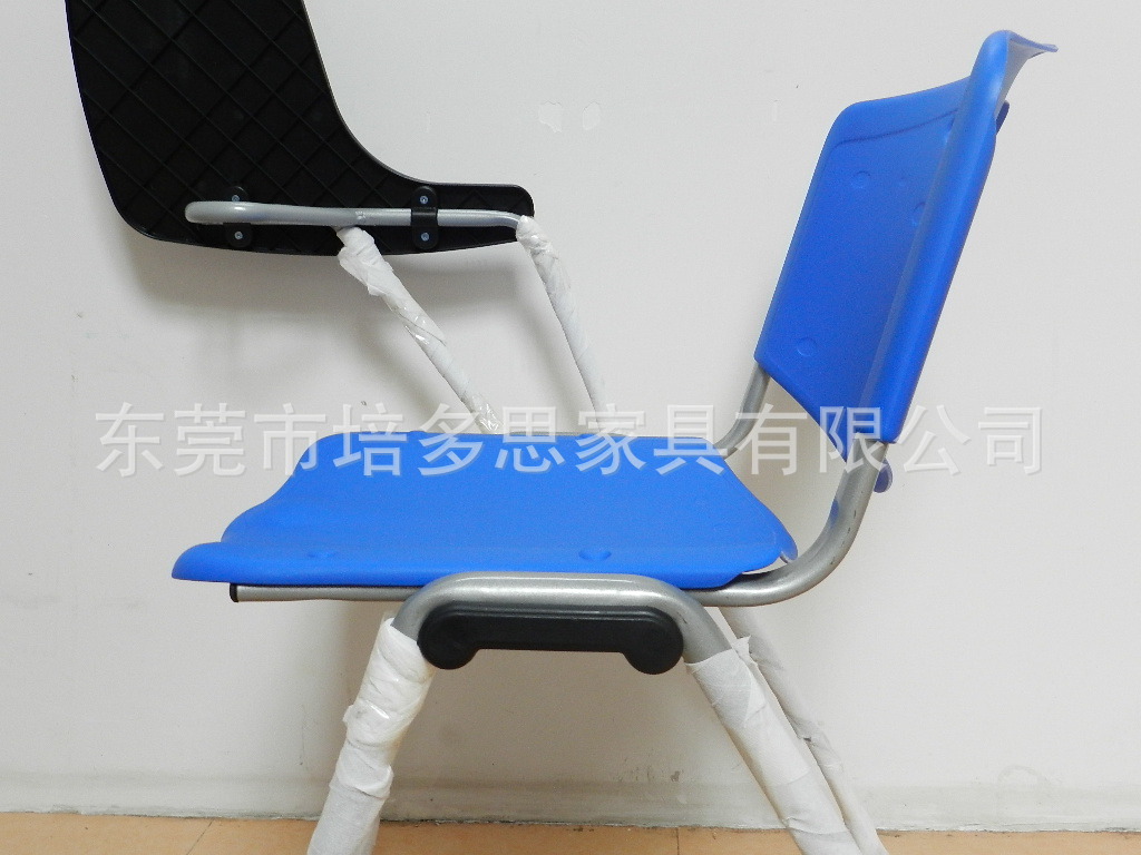 产品说明:采用韩国进口1600的PP料座板与靠背,胶板有黑色,蓝色,橘红,,灰色可选,国际冷扎管烤漆钢脚架,管壁厚1.2mm,脚架有闪银/黑色可选!