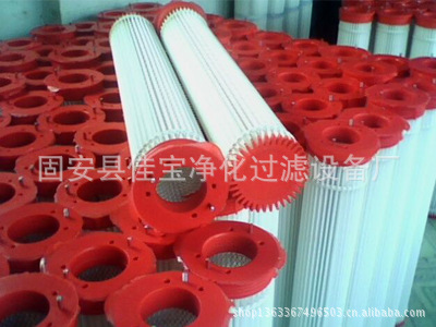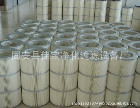 滤筒是由一定长度挺括的滤料折叠成褶,首尾粘合而成的星形过滤筒。滤筒无笼骨,安装简便。 1滤筒的品种较多,有细而长与粗而短之分。细长滤筒(如φ≤160,L=1~2m),其褶(如45褶)间空隙大、夹角大,褶少而浅,过滤面积比同径同长的滤袋大2~5倍,清灰易而效果好;适用于浓度≥15g/m粉尘的过滤除尘,过滤风速0.6~1.2m/min。粗短滤筒(如φ350,L=0.66m)直径大、长度短、褶多(120~350褶)而深、褶间空隙小,过滤面积大,较之同径同长滤袋面积大14~35倍,适于场地面积小、空间小的地方布置;但因褶角小,粉尘易积聚,难于清灰,适于浓度≤5g/m粉尘的过滤除尘,过滤风速不宜>0.6m/min。滤筒脉冲除尘器的安装方式有三种:垂直、倾斜、水平安装。滤筒垂直安装,脉冲清灰时,粉尘易清落沉降至灰斗,效果好。倾斜安装时,滤筒上下相叠,结构紧凑,占地面积小,便于换筒,但清灰时,上层滤筒清落的粉尘沉落于下层滤筒上,难以清除。水平安装,下层滤筒上部的粉尘更难清除。倾斜安装滤筒除尘器适于中小除尘系统非粘性、低浓度、粒粗粉尘除尘用,也适于一些老式袋除尘器的改造用。编辑本段滤筒特点1、大大提高有效的过滤面积;2、保证一个低而平稳的压差,提高流通风量;3、滤筒元件小巧,便于安装;4、特别适用于粉尘浓度大的行业。编辑本段滤筒国家标准1、范围本标准规定了滤筒除尘器的定义、类型和型号规格、安装方式、技术要求、试验方法、检验方法、检验规则、标志、包装、运输、储存等。本标准适合用于以合成纤维无纺滤料、纸质滤料,及以合成纤维无纺滤料、纸质滤料为基材为覆膜滤料制成的过滤元件的滤筒式除尘器的设计和制造。本标准不适用于防爆型。2、引用标准下列标准所包含的条文,通过在本标准中引用而构成本标准的条文。本标准出版时,所示版本均有效。所有标准都会被修订,使用本标准各方应探讨使用所列标准最新版本的可能性。GB699-1988 优质碳素结构钢技术条件GB700-1988 碳素结构钢GB702-1986 热轧圆钢和方钢尺寸、外形、重量、及允许偏差GB704-1988 热轧扁钢尺寸、外形、重量、及允许偏差GB706-1988 热轧工字钢尺寸、外形、重量、及允许偏差GB912-1989 碳素结构钢和低合金结构钢热轧薄钢板和钢带GB985-1988 气焊、手工氩弧焊及气体保护焊焊接缝坡口原基本形式和尺寸GB3091-1993 低压流体输送用镀锌焊接钢管GB3092-1993 低压流体输送用焊接钢管GB3274-1988 碳素结构钢和低合金结构钢热轧厚钢板和钢带GB4053.1-4053.4-1993 固定式钢宣梯、钢斜梯、工业防护栏杆、和工业平台GB8162-1987 结构用无缝钢管GB8163-1987 输送液体用无缝钢管GB8923-1988 涂装前钢材表面锈蚀等级和除锈等级GB9787-1988 热轧等边角钢尺寸、外形、重量及允许偏差GB9788-1988 热轧不等边角钢尺寸、外形、重量及允许偏差GB12138-1989 袋式除尘器性能测试方法GB12625-1990 袋式除尘器用滤料及滤袋技术条件GB4745-1997 纺织品织物表面抗湿性测定沾水试验GB/T4669-1995 机织物单位长度质量和单位面积质量的测定GB/T3820-1997 纺织品和纺织制品厚度的测定GB/T5453-1997 纺织品、织物透气性的测定GB/T12703-1991 纺织品静电测试方法GB/T3306-1994 标牌GB/T1804-1992 一般公差线性尺寸的未注公差GB/T451.2-1989 纸和纸板定量的测定法GB/T451.3-1989 纸和纸板厚度的测定法GB/T2679.14-1996 过滤纸和纸板最大孔径的测定GB/T454-1989 纸耐破度的测定法GB/T2679.3-1996 纸和纸板挺度的测定法GB/T53134-1994 除尘器表面喷漆质量分等JB10191-2000 袋式除尘器安全要求脉冲喷吹类除尘器用分气筒ZBW04015-1989 滤料疏油性检验