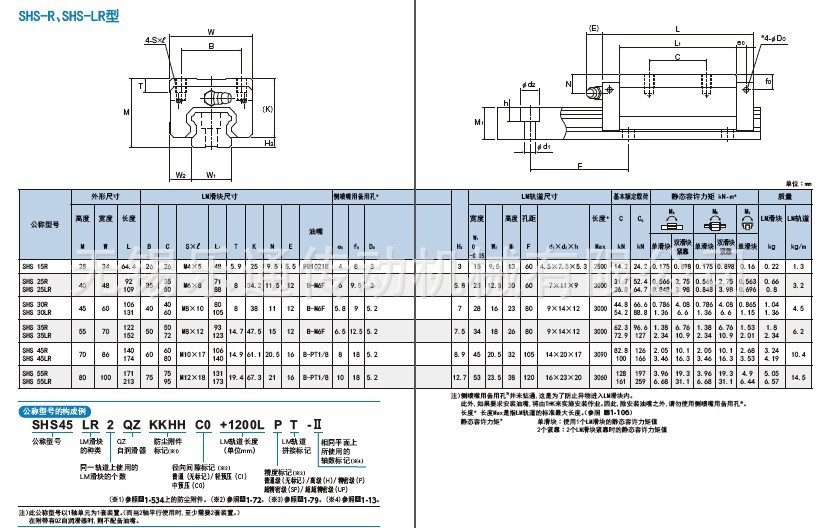 具有与SHS-R型同一横断面形状,延长了LM滑块的全长(L)、增加了额定载荷的类型。