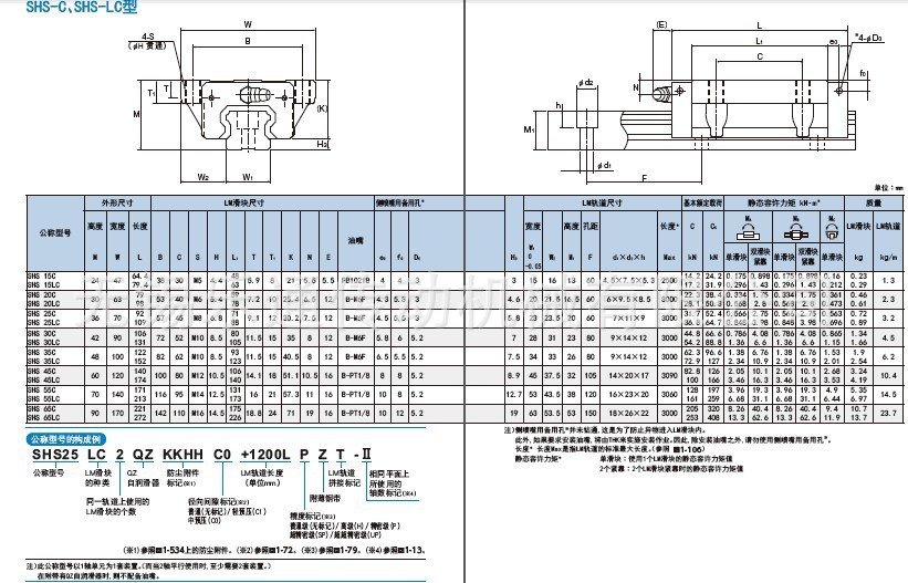具有与SHS-C型同一横断面形状、延长了LM滑块全长(L)、增加了额定载荷的类型。