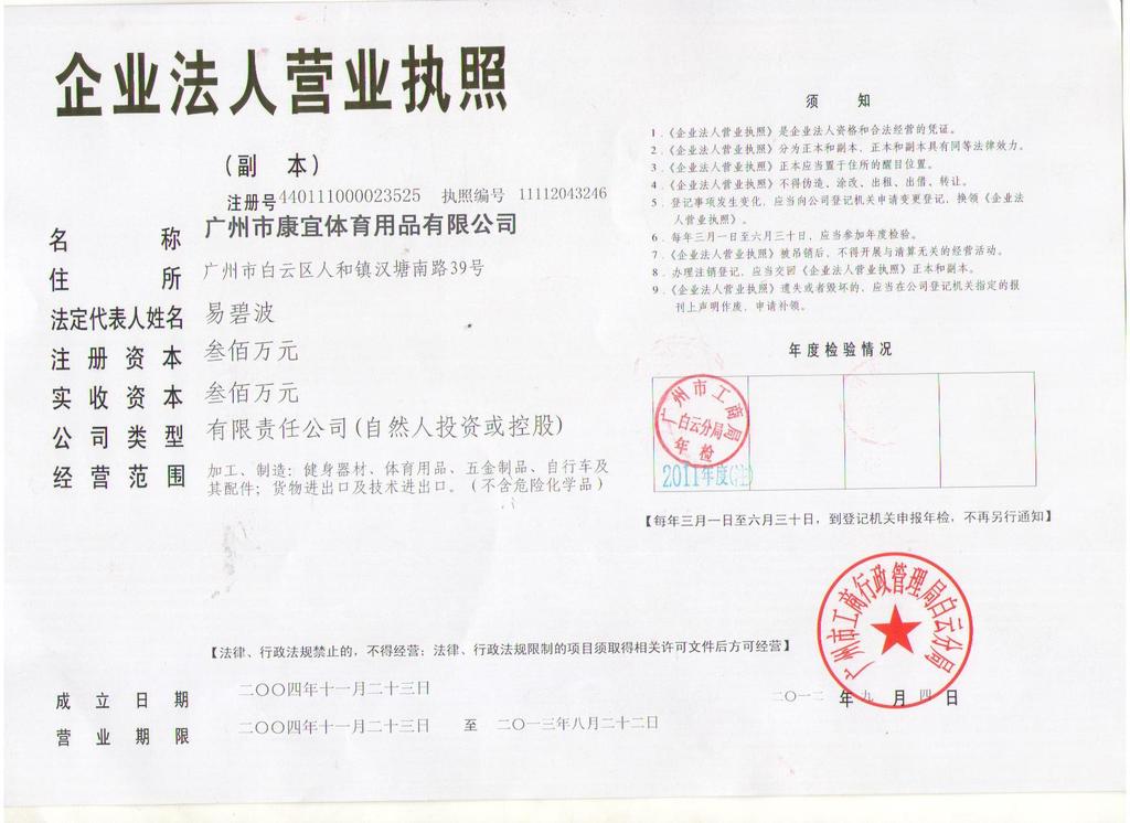 广州市康宜体育用品有限公司(生产基地) 广州市白云区人和镇汉塘南路39号 电话:020 86208546 传真:020 86207715 网址: 电邮:Email:ky002@ |