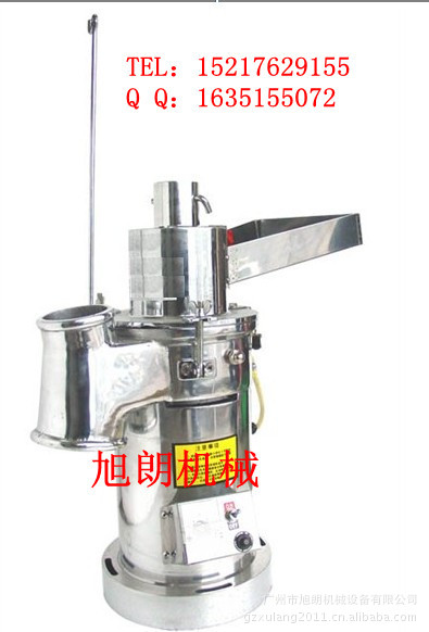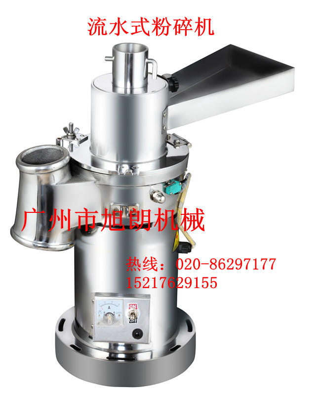 广州旭朗公司所生产的HK-08A /HK-08B落地流水式粉碎机又名高性能粉碎机、体积小、造型美观、移动方便、操作简单,特殊构架运转绝无振动、噪音低、安全性高、性能稳定、卫生洁净、损耗极低、效率高、细度准确可调;与药物接触部分用不锈钢制作,符合卫生标准,除制细粉外,还可制煎汤剂用的粗颗粒饮片(用粗颗粒饮片煎煮汤药,可提高饮片有效成分的溶出率,节省大量药材),对中西药物、树根树枝、化工原料、食品原料、矿物、土壤、粮食、煤炭、实验原料有极理想的粉碎效果,是粉碎脆性物料的首选机型。是目前诊所、门诊部、小型医院、专科医院、医院药房药店,研究所、实验室、试制室、大中专院校、科研单位、商场、家庭粉碎的理想设备。