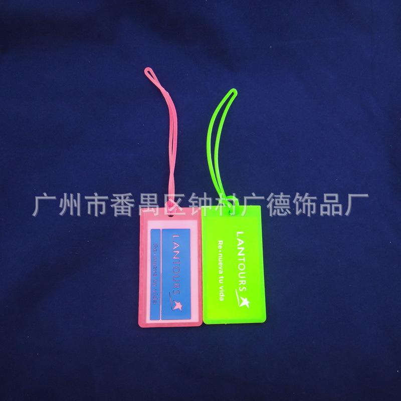PVC行李牌,主要材质为PVC,工艺为点胶(微量射出),大小规格可根据客户要求制作,LOGO可以做2D或3D效果,也可以丝网印刷;价格优惠,是各企业促销之理想选择,本产品图片信息仅供参考;欢迎来电来函咨询或来图来样生产。