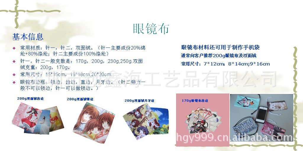 清洁布由超细超软的纤维组成,可用于擦拭不同种类的产品:如眼镜片、光学晶体、珠宝及雷射唱片、
