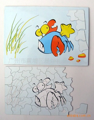7)磁性拼图(纸板拼图):采用下面软胶磁铁(或纸板 灰板纸)+上面铜版纸四色印刷裱光膜,中间冲切设计需要的拼图小片来制作而。