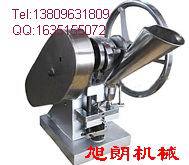 旭朗单冲压片机是一种小型台式电动连续冲压机(无电时也可手摇压片),能将各种颗粒状、晶体状或者流动性好的粉状原料压制成圆片状、圆柱状、球状、凸面、凹面和其他各种几何形状的产品(如方形、三角、椭圆、囊形等),还可压制带有文字、商标、图案的产品,适用于压制中药片剂、西药片剂、钙片、口含片、螺旋藻片、奶片、糖果片、泡腾片、咀嚼片、调味块、樟脑丸(卫生球)、芳香片、消毒片、催化剂、化肥片、农药片、纽扣电池、电子元件、冶金粉末陶瓷粒等。适合于制药、保健品、食品、农业、化工、电子电池、冶金陶瓷等行业作为小批量生产和科研实验教学使用。本机只装一付冲模,物料的充填深度、压制厚度均可调节,也即是产品的重量、厚度及硬度均可调节,只要更换不同的模具就可压制不同的产品。动力来源方便手摇,电动均可。本机价格低,体积小、操作简便,技术成熟,质量过硬,厂家直销,价格优惠