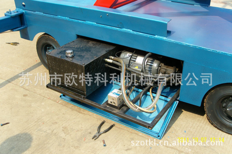 :秉承传统移动升降机的特性和优点;第二:传统移动升降机采用铁滚轮,铰框式移动升降机采用优质工程尼龙滑块,大大提高了机器上升时的平稳性,减震,降低机器升降时的噪音;第三:采用全封闭液压动力单元,避免了电动机受潮和油箱进水的液压油变质,使液压系统的寿命大大的延长,大大减小了电动机和油泵工作是发出的噪音;第四:采用卧式油缸一框撑三框,臂架采用铰式链接,增加了套和销轴的接触面积,在上升和下降时大大提高了机器的稳定性,与传统升降机相比,大大减低了台面在高空中的偏摆度,增加了高空作业的安全性