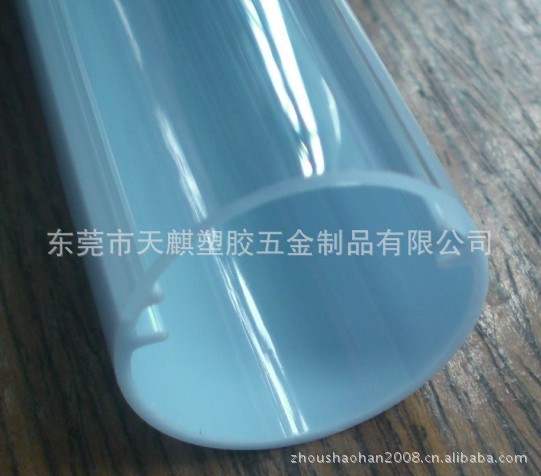 1.规格:T5(外径15mm,配PCB板规格为12mm*1.2mm,10mm*1.2mm),T8(外径26mm,配PCB板规格为22mm*1.5mm),T10(外径30mm,配PCB板规格有21.3mm*1.6mm,26mm*1.6mm,25mm*1.6mm),壁厚为1.0ˇ1.1mm.PC管长度可根据客户的需要长度裁切. 2.外观:全透明管,全条纹管,发光面为透明背面为蓝白管,发光面为条纹透明背面为蓝白管,发光面为扩散雾状背面为蓝白管,全扩散管,另可根据客户的需要调其他颜色. 3.材质:PC(聚碳酸酯), 一种新型的热塑性塑料,透明的度打90%,被誉为是透明金属。它刚硬而具有韧性,具有较高的冲击强度,高度的尺寸稳定性和范围很宽的使用温度、良好的电绝缘性能及耐热性和无毒性。PC的热性能优异,可在-40℃-130℃之间长期使用,脆化温度在-45℃以下。运输方便,绿色环保塑胶材质. 4.用途:光学照明护栏管,LED日光灯外壳等. 5.我司还可根据客户所需的管材规格定设计开发,定制加工产品,欢迎有需要的商界朋友们来电(13790647560周小姐)咨询!