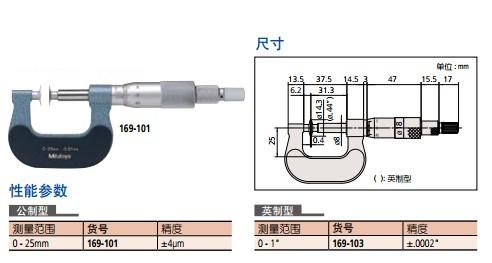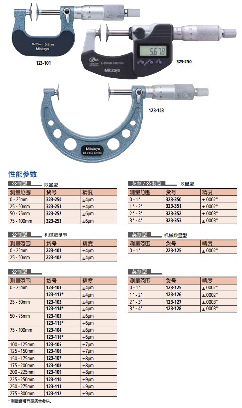 产品名称:盘型千分尺 产品厂家:MITUTOYO 生产型号:323/223/123/169系列 产品描述: