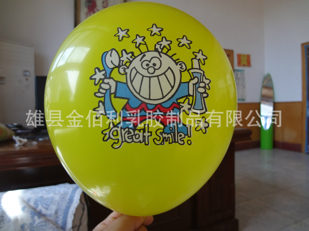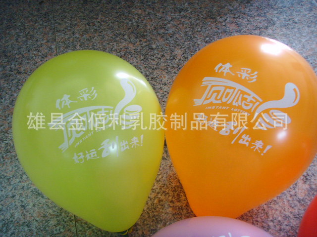 金佰利气球公司位于保定雄县大步村工业园区,公司是一家专业印刷生产广告气球的公司,主要产品有珠光气球,彩印气球,10寸高品质气球,12寸防美气球,异形气球等多种产品,我公司的设备是引进国外半自动印刷设备日产量20万只, 公司印刷的材料都是经过国家检测的绝对保证无毒无味 ,可根据贵公司的企业LOGO来样定做保证质量,交货及时,欢迎新老客户来电洽谈