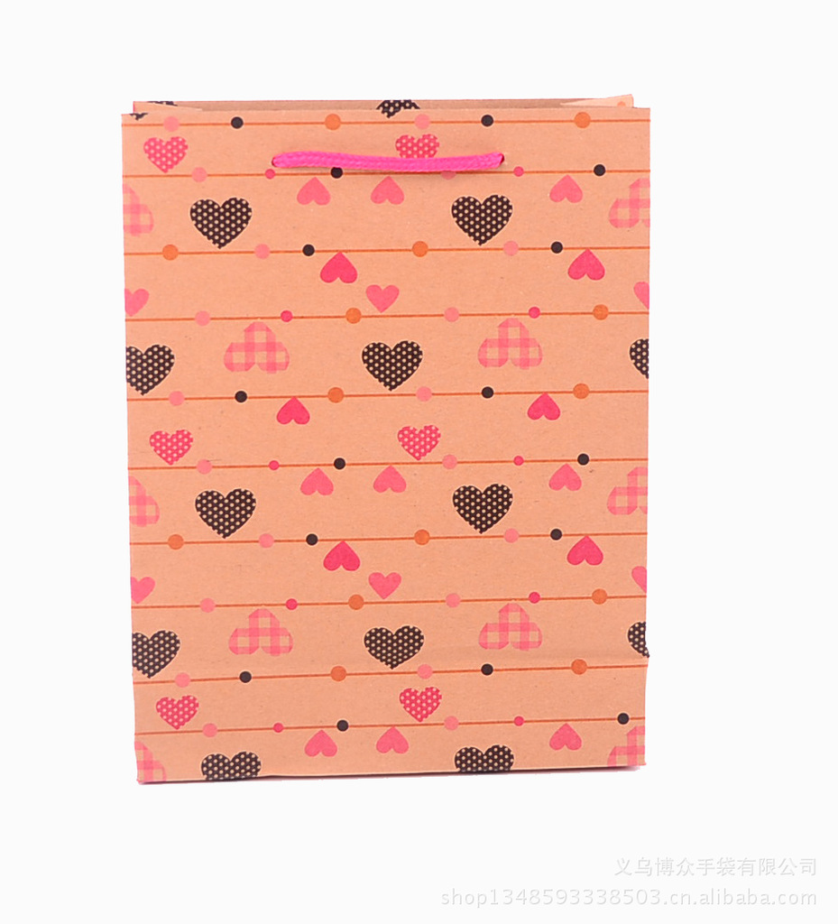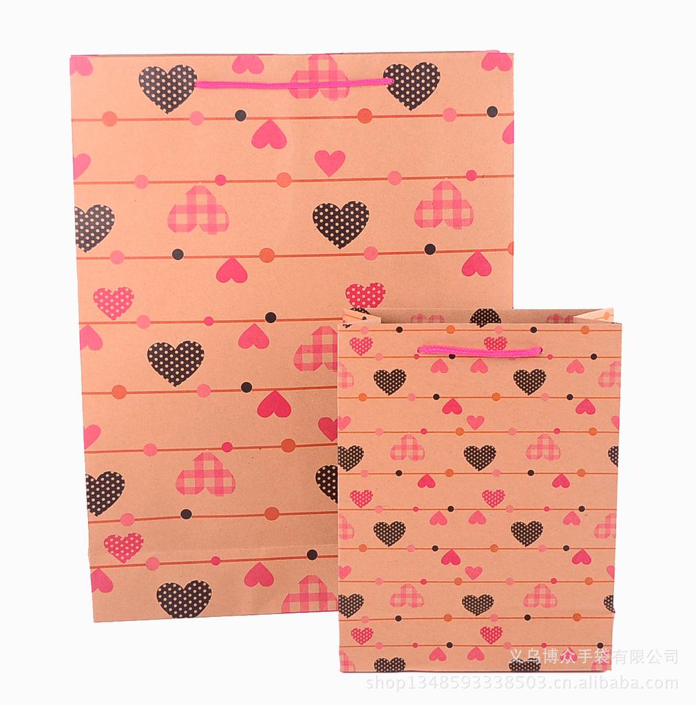 旷世工艺 经典牛皮纸袋 情人节礼品袋 爱心LOVE礼物手提袋 批发