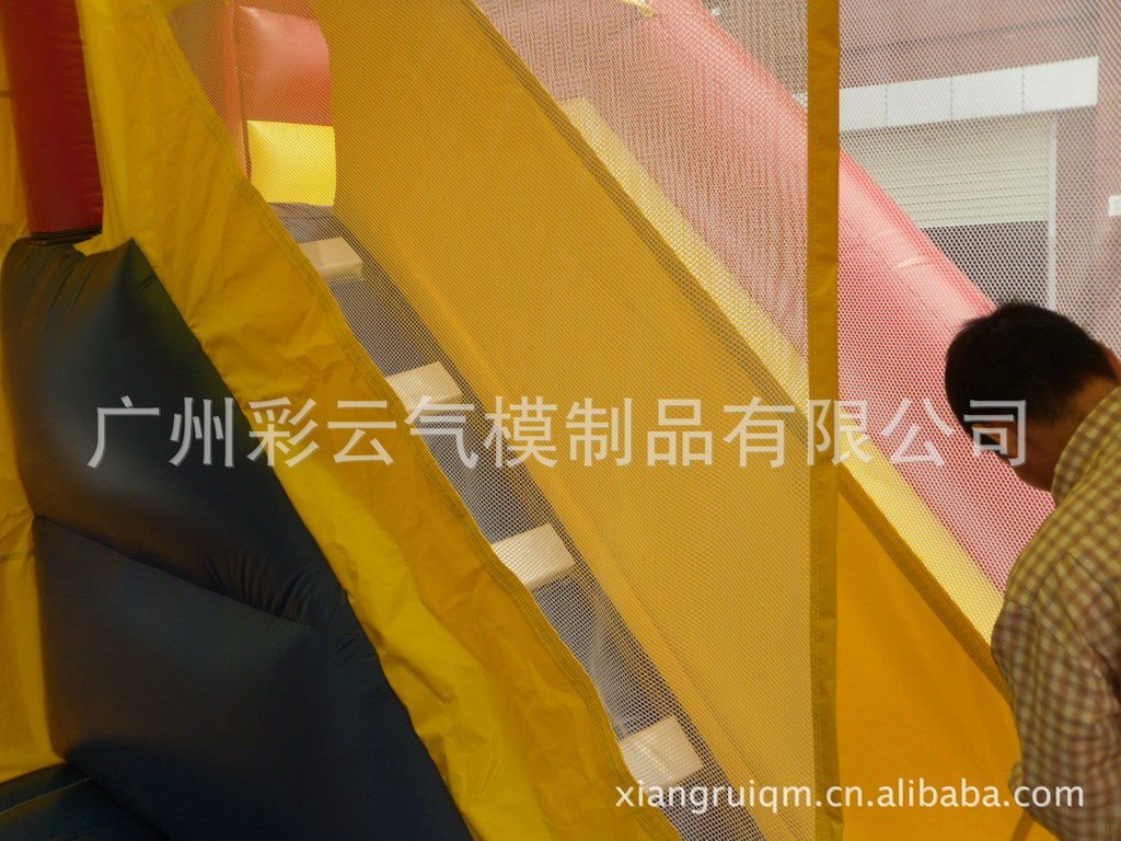 广州彩云气模制品有限公司是中国一家专业的气模(充气产品)制造厂家,专门从事设计、生产、销售充气游戏、充气跳床、充气城堡、充气水上娱乐产品、充气滑梯、充气攀岩、充气水池、充迷宫、充气拱门、充气卡通、充气舞星、充气帐篷等一系列充气类制品!
