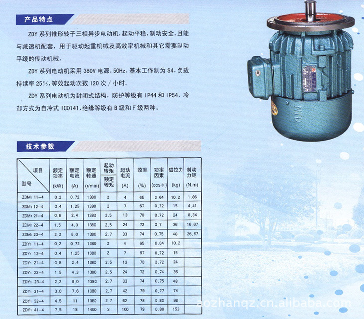 ZD型锥形转子三相异步电动机是电动葫芦的起升电机,本系列电动机不附加任何电磁设备,具有自动刹车功能,即在切断电源时,依靠转子上压力弹簧产生摩擦力矩制动可使电机在短时间内停止转动。该电机起动力矩大、制动可靠,可频繁起动。2000年8月通过ISO9001国际质量体系认证。