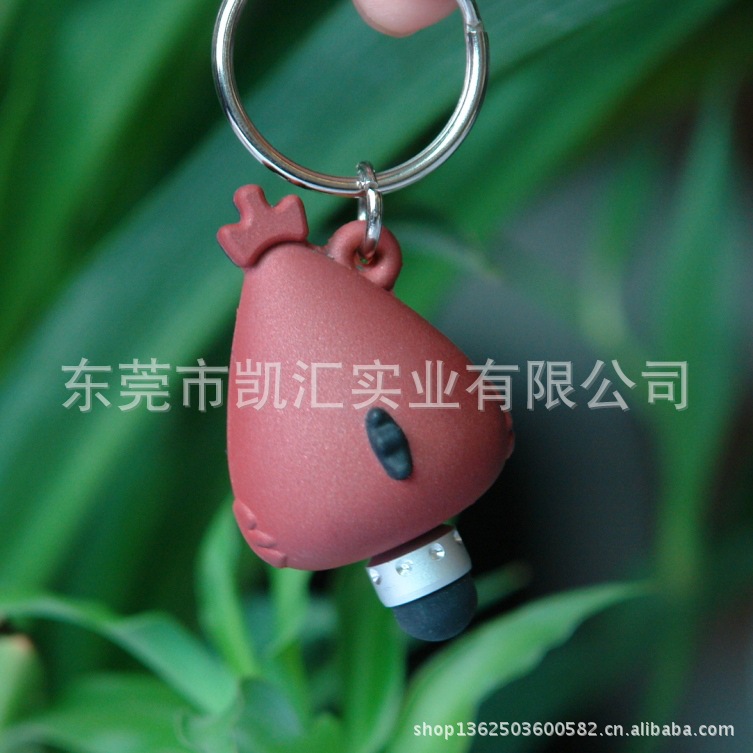 PVC软胶质感、可爱卡通造型电容笔。该触屏笔可用于各种触屏手机、平板电脑等设备,如iPhone,iPad,Android安卓等智能手机和电脑,同时也可作各类数码产品的手写笔。本品另附有3.5MM音频插口防尘塞,是一款功能合一、即实用又可作装饰点缀之用的工艺产品。