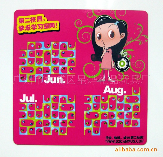 4)磁性留言板 白板:采用软胶磁铁(或纸板)+铜版纸四色印刷裱光膜+可擦笔.