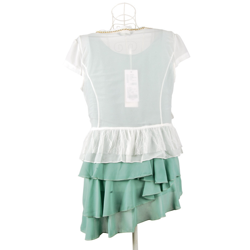 时尚大码纯棉女装T恤荷叶边领蝴蝶结装饰 2269