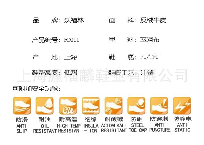 上海渥福麟鞋业有限公司是一家专业从事安全鞋,防护鞋,职业鞋,军警,司法,税务、工商等职能部门制式皮鞋,休闲鞋,户外登山防护用品,皮具,手套,职业服装,特种防护用品等研发、设计、生产、销售和售后服务一条龙的现代化生产型企业。经过多年的努力,现已发展成为国内少数具备中高端研发能力,大规模生产能力,成熟的市场运作能力及完善的售后服务的知名企业。