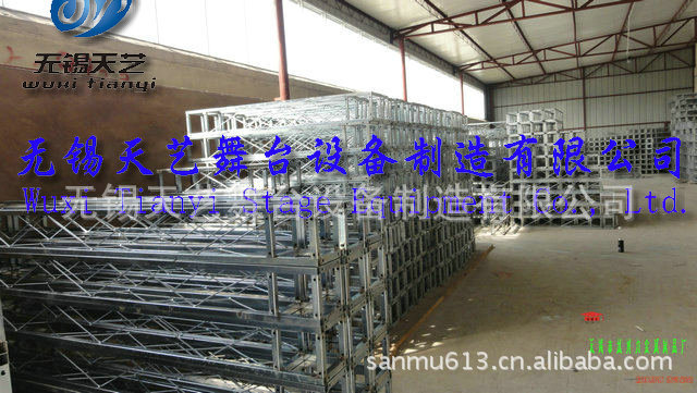 无锡天艺舞台设备制造有限公司是一家经过工商认证的有限责任公司,专业生产舞台,桁架,铝合金桁架,铝合金舞台,快装专利舞台,脚手架,灯光架,雷亚架,折叠舞台,玻璃舞台,合唱台等各种展览器材的制造研发和销售。公司位于国家级经济开发区 ,芙蓉工业园区A区蓉洋三路 32-1号,无锡东出口处8公里即可到公司,东临上海、西靠南京、北枕长江;周边与江阴、张家港、常熟等国家卫生城市紧邻,交通便捷、人杰地灵。 公司目前的● “三个最” -----最响品牌无锡天艺公司在中国网络媒体投放的广告费用10万余元,覆盖全国各个地方,产品规格齐全,量大销售,价格优惠,产品推广等灯的营销网略使天艺的市场占有率高达32%,现有逾千家客户,规模庞大的营销队伍,产品销售遍布全中国。目前江苏最大规模的拥有世界上最先进的设备流水线式的生产模式,是目前江浙沪最大规模的生产厂家之一,生产能力桁架日均产量超过250米,舞台日产量达250平方,浪莎拥有占地5000平米的厂房,集设计、开发、生产、销售于一体,是目前世界上规模最大的舞台桁架生产企业,现货单位。最强实力天艺公司凭借最现代化的管理优势,实现了生产成本的最低化,创造了传媒广电行业效益最好局面,一直雄居行业实力榜首,独占鳌头。最多品种天艺产品覆盖百余种大类上千个品种,是行业品种最多,规格最齐全的企业。森科雄厚的开发实力,每年都能有2-5款新品种,获得国家专利,极大满足了客户的需求。