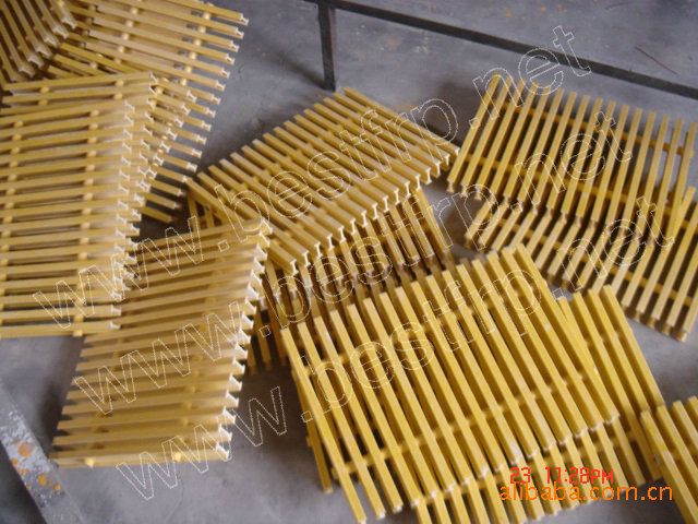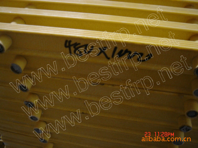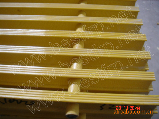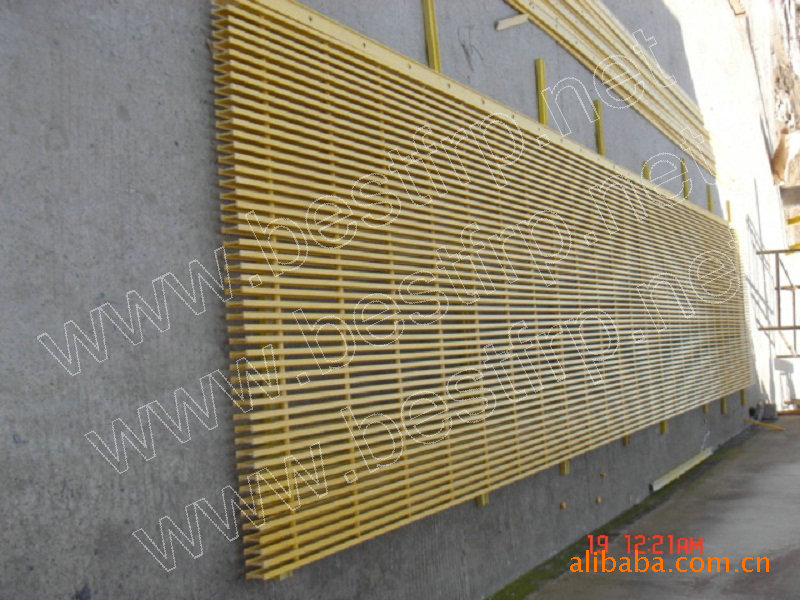 用拉挤FRP“I”型材作为承重杆,用杆、棒、管等作横杆,使用胶粘或插销,按照一定的间距将横杆与承重杆,通过甲乙组胶水连接在一起,使之固定,不能转动或移位,就形成了FRP格栅。这些独特的装配技术使格栅可以满足任何场合的使用要求,而且切割或开孔时象切实心板一样方便,不会散落。