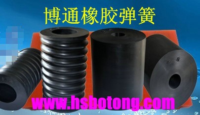 橡胶弹簧:是一种高弹性体,制作材料有普通橡胶。橡胶弹簧弹性模量小,受载后有较大的弹性变形,借以吸收冲击和振动。它能同时受多向载荷,但耐高温性和耐油性比钢弹簧差。如有特殊要求可用耐油橡胶制成。该产品减振效果好,共振领域小,使用寿命长,成本低,还有良好的耐寒性,优良的气密性,防水性,电绝缘性,是减振的最佳选择。