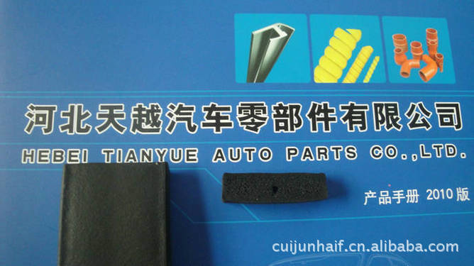 河北天越汽车零部件有限公司专业生产各类三元乙丙(EPDM)橡胶密封条、三元乙丙海棉(发泡)橡胶密封条、密实-海绵-钢芯三复合密封条、四复合密封条、软塑料-硬塑料二复合密封条、密实-橡塑-静电植绒密封条、PVC/CPVC/ABS/TPE材料挤出复条、塑钢门窗密封条、铝合金门窗胶条、门窗减震密封条、建筑幕墙用橡塑密封条、集装箱门框密封条、冷藏车门密封胶条、厢车门框密封胶条、冷库门密封胶条、冷冻冷藏箱用门封条、汽车用密封条、汽车窗导槽条、汽车灯具密封胶条、车门玻璃滑槽条、车门海绵(发泡)密封胶条、车门玻璃挡水条、汽车玻璃风挡密封条、汽车门窗密封条、火车门窗密封胶条、地铁、高速列车门窗密封条、船用门窗密封胶条、船用仓盖橡胶密封条、防盗门密封条、门底自动密封条、机械用密封条、阻燃密封条、门用自粘型密封条、门窗框密封条(带被胶)E型、P型、D型、O型、V型、U型、J型、L型、通用型三元乙丙发泡柔性密封条、彩色密封胶条、电器密封胶条、柜门海绵橡胶密封条、橡塑(PVC)密封条、、硅橡胶密封条、三元乙丙胶管、制品专业厂家。现已形成原材料配制、模具开发、产品成型一条龙生产模式。我公司产品大多出口欧美中东等国家,深受国外客商的好评。已与国内北京、天津、上海、广州、深圳等几十家余家塑钢门窗、玻璃幕墙装饰公司、汽车、火车、飞机、船舶制造厂家建立了牢靠配套供求,长期的合作关系