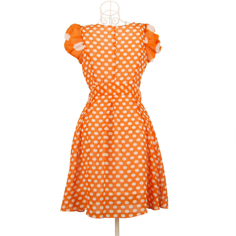 品牌折扣 低价批发 专柜正品 修身圆领短袖圆点百褶连衣裙 1213