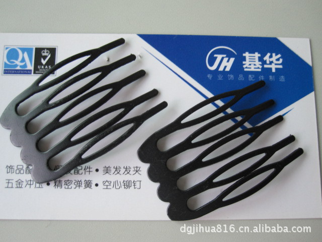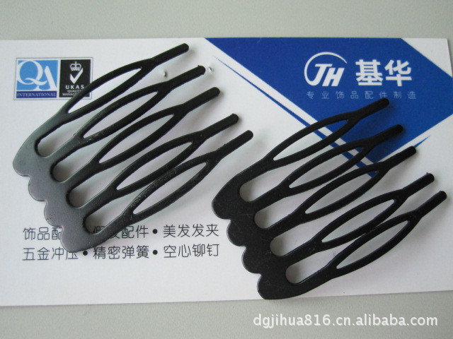 我司专业生产假发接发卡子,接发夹,啪啪夹,采用优质进口不锈钢和国产碳钢材料生产。有直齿和回形齿,有2.3cm6齿/7齿,2.8cm6齿/8齿,3.2cm6齿/9齿,3.4cm10齿,3.8cm10齿。通用颜色有1#黑色,2#深棕,3#棕色,4#浅棕,5#米白,6#银色,7#肉色,8#米色。可以按贵司样品颜色生产,希望我们的接发卡子给您的假发产品增添别致的风格。