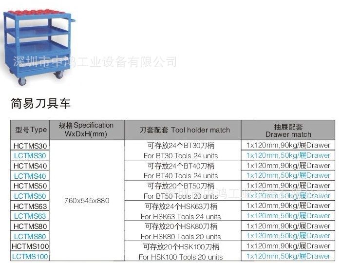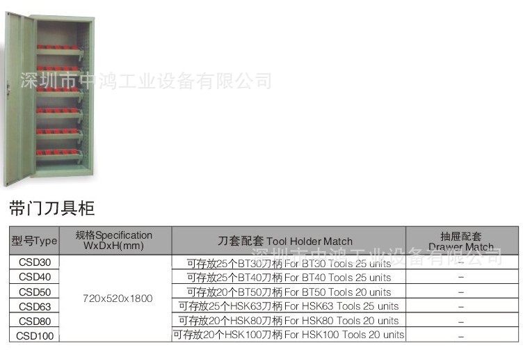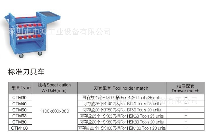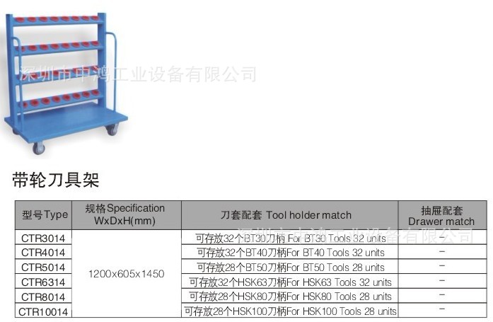 | CST30A | 760W*705W*585H | 可存放20个BT30刀柄 | 1*80MM,1*400MM,150KG |