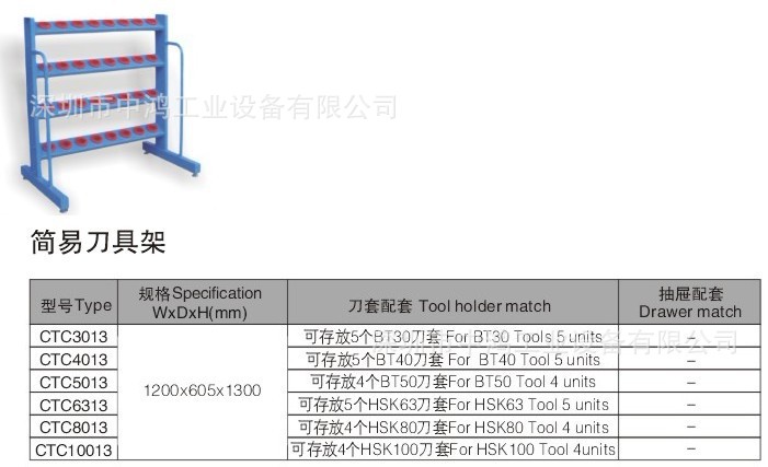 | TH40 | 640L*128W*200H | 可存放5个BT40刀套 |