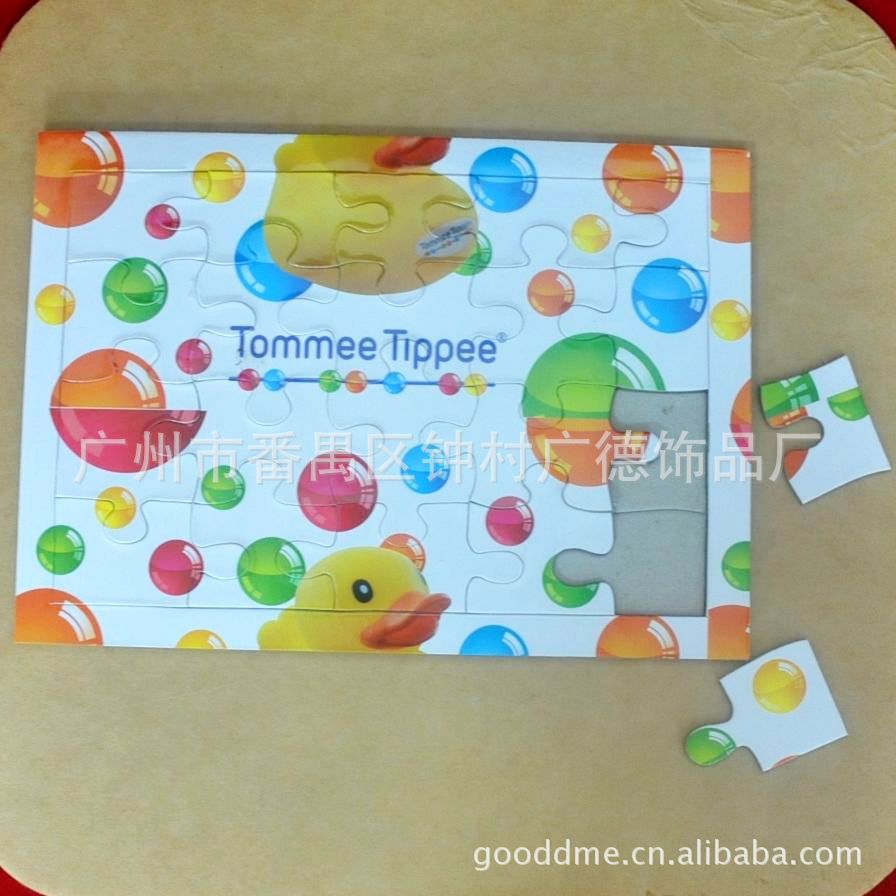 产品特点 | 1.产品可以把一个完整的拼图切割成不同的块状,可以拆装; 2.采用纸板加上面精美彩色印刷过光胶或哑胶,可根据客户要求冲切不同形状的小块,是提高儿童智力的理想玩具,让企业之品牌不断再现在消费者眼前,价格优惠,欢迎随时咨询及订购。 3.除了纸拼图以外,本厂另一大类拼图为磁性拼图。磁性拼图与之拼图相比它的优势在于可以吸附在任何磁性产品上。 |