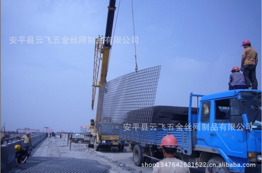 桥面铺装冷轧带肋钢筋网D8 桥梁隧道底衬D10 现浇楼板D6 车库底板D12 钢筋混凝土路面用钢筋焊接网、桥面铺装用钢筋焊接网、隧道衬砌配筋用钢筋网、桥台、挡土墙及市政工程用钢筋网、钢筋焊接网剪力墙钢筋焊接网是一种在工厂焊接成型的网状钢筋制品,是纵向和横向钢筋分别以一定的间距排列且互成直角,全部交叉点均用强电阻压力熔焊在一起的钢筋网片。 钢筋焊接网被国内外公认为一种新型、高效、优质的钢筋混凝土结构建筑钢材而大量应用在工业与民用房屋的楼板、屋盖、墙体、地坪、混凝土路面、桥面铺装、机场跑道、隧道衬砌、混凝土管、桩等方面。