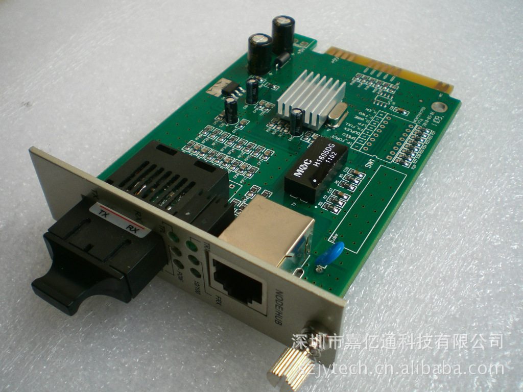 JYT-DS801F 10/100M 自适应快速以太网光纤收发器卡式PCB板(光电转换器)是为通信宽带城域网接入而设计,采用IP113芯片设计,以成熟稳定的技术,防雷保护功能,防静电能力强,高可靠性,以低成本的方案完成快速以太网双绞线电信号到光纤光信号的双向介质转换,将网络的传输距离从100米延伸到120公里,实现了宽带城域网通信的接入。百兆卡式光纤收发器板设备具有高速率,高带宽,功耗小,衰减低,电磁兼容性好,安全,寿命长的优势,百兆插卡式收发器板可放入插卡式收发器外壳和16槽收发器机架内。