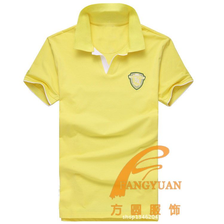 T恤批发/广告促销t恤定做/短袖翻领绣花t恤/男装黄色t恤生产厂家
