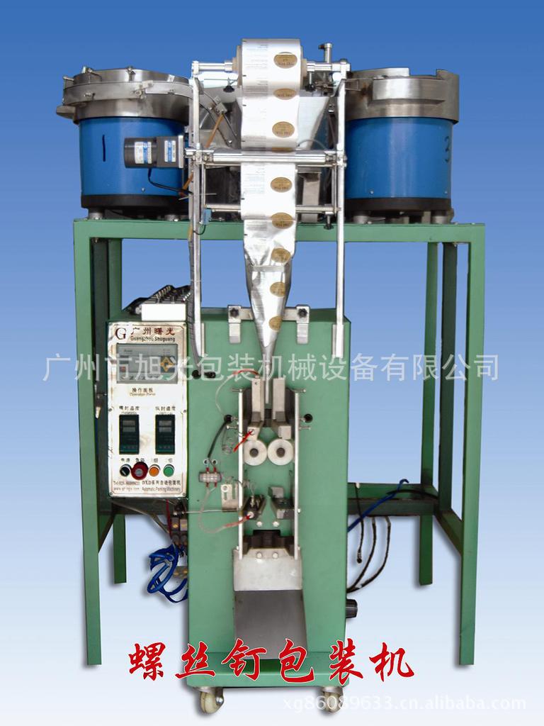 广泛适用于电器、灯饰、食品、五金装饰产品的附属安装螺丝、螺母、小塑胶件的混合包装的自动计数包装。 技术特点: 1:针对螺丝样品量身定做的振动盘、直线振动排列装置,和精密的计数控制装置,确保每袋准确无误。 2:包装含有图标的包装材料时,机器先进的步进控制和色标跟踪器配合使用,可获得完美的商标图案。 3:先进的PLC或单片机控制系统,故障自停机、自报警、自诊断,使用安全、简便。 4:自动显示包装数量,可方便的统计出机器的工作量。