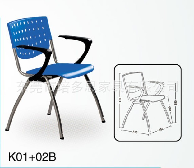 产品说明:采用韩国进口1600的PP料座板与靠背,胶板有黑色,蓝色,灰色等多色可选,国际冷扎管烤漆钢脚架,管壁厚1.2mm,脚架有闪银/黑色可选!