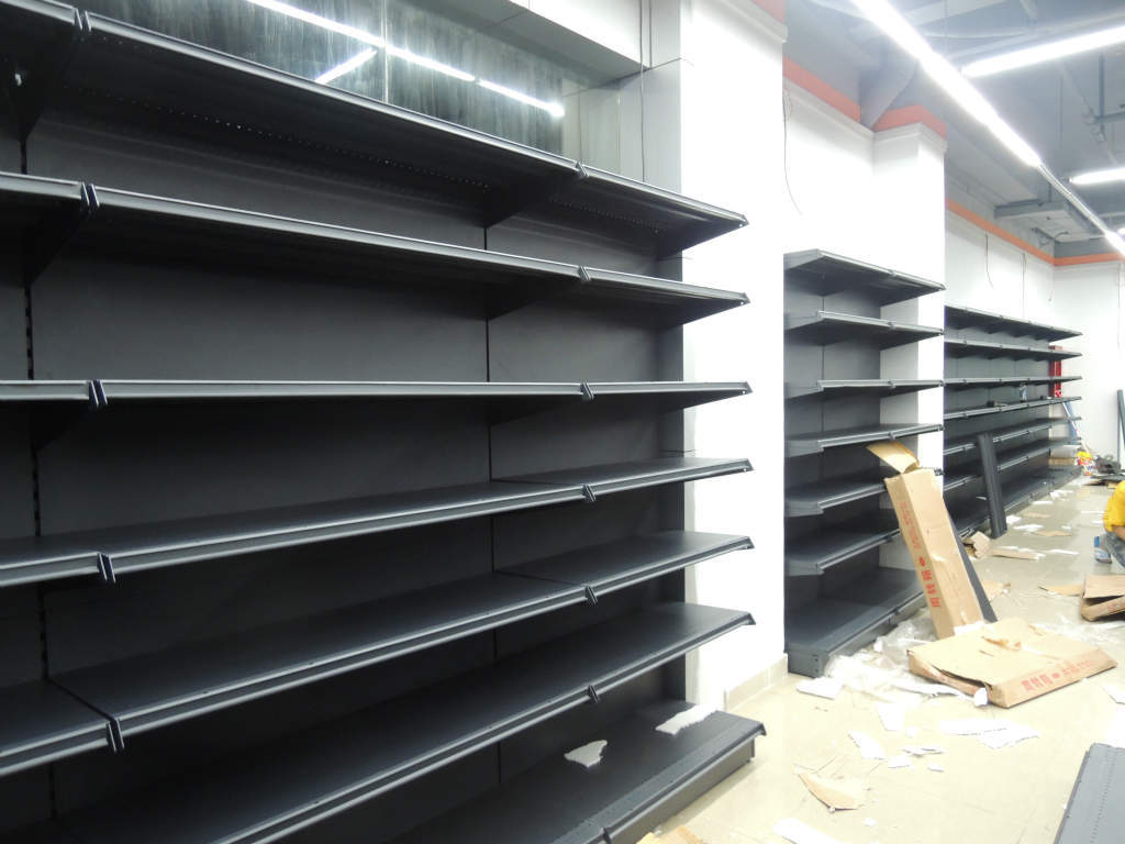 厂家供应深圳布吉南岭某商场RJ-21-B网式超市货架项目实例 接受仓库货架|工作台|工具架|展示架|超市货架订做