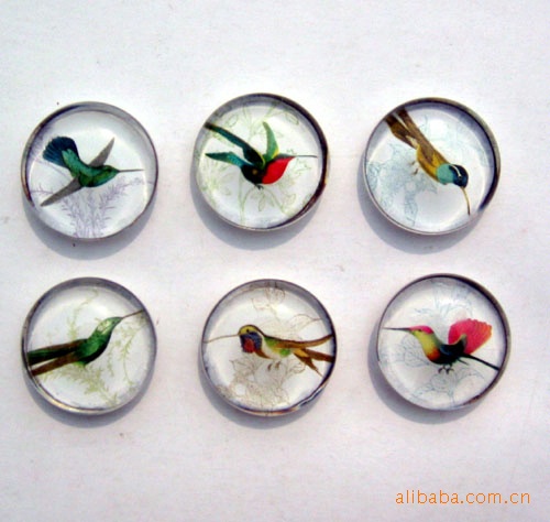11)玻璃冰箱贴:采用下面软胶磁铁+上面铜版纸彩色印刷+半圆玻璃窗腹膜制作而成