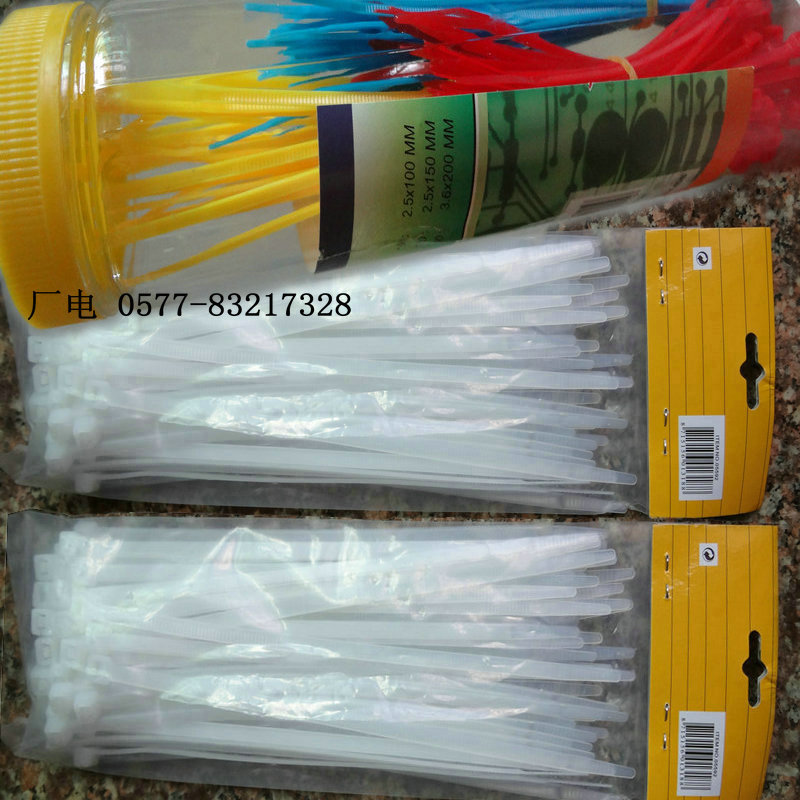 尼龙扎带材料:该产品采用神马66(EPR27)原料制作,且该材料通过美国UL认可,防火等级为9V-2、耐酸、耐蚀、阻燃、绝缘性能良好不易老化、自锁式设计承受力特强。包装:100条/塑料袋,外贴不干胶标签,其他特殊包装尺寸可根据客户要求提供。