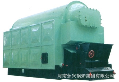全自动链条型组装水管蒸汽锅炉,是双锅筒纵置链条炉排蒸汽锅炉.锅炉本体由纵置的上、下锅筒和对流管束组成.燃烧室左右二侧装有光管水冷壁管.上锅筒内装有汽水分离装置和表面排污装置,下锅筒内装有定期排污装置.在锅炉尾部布置了省煤器.锅炉燃烧部分采用轻型链条炉排实现机械加煤,配有鼓风机、引风机进行机械通风,并装有螺旋出渣机实现自动出渣.燃料自煤斗落到炉排上,进入炉膛燃烧后,火焰经过后拱折射向上通过本体燃烬室折向对流管束,通过后烟气出口进入省煤器、除尘器,然后由引风机抽引通过烟道至烟囱排向大气.
