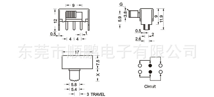 供应SK-22F02两档横柄滑动开关 东莞拨动开关厂家
