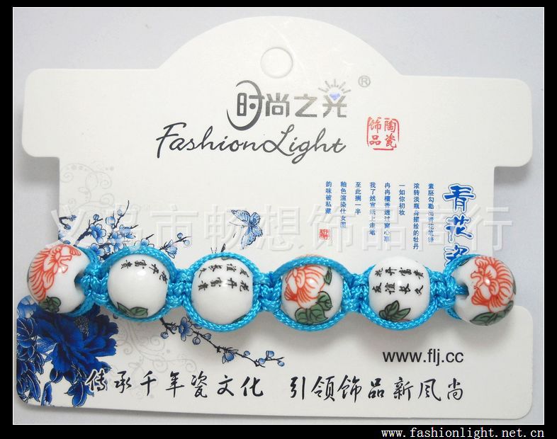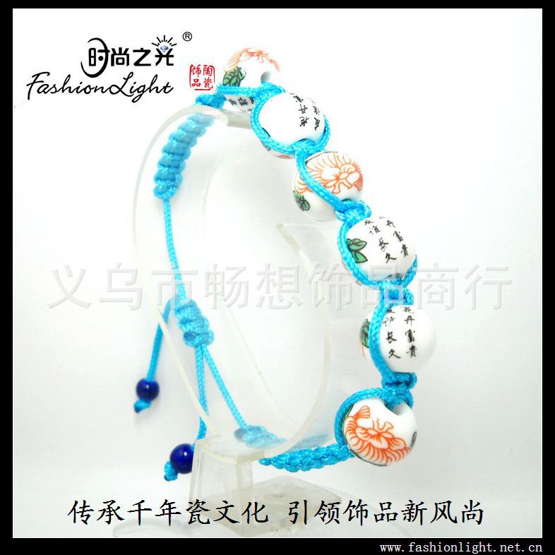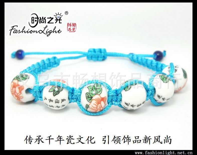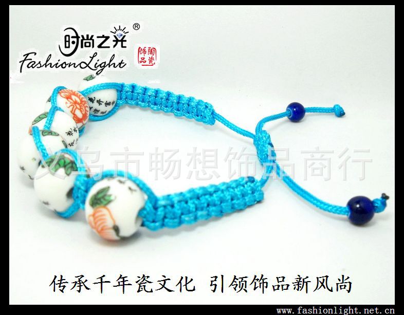 [厂家直销]时尚之光民族陶瓷饰品 手工 女 粉彩瓷手链(12MM)