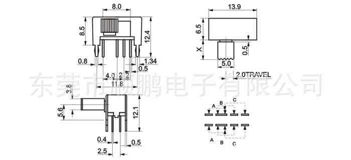 顺鹏电子供应全系列拨动开关/滑动开关SK-23D04