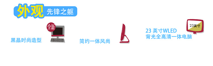 仅70mm 的机身厚度,展现超薄时尚。经典黑晶造型搭配全新“烽火红”设计,瞬间点燃娱乐激情。 创新的一体式设计,配备惠普超薄无线多媒体键盘、惠普无线光电鼠标,免除繁杂线缆,尽显简约风尚。 完美支持全高清,配合16:9 画面比例,为您呈现绝佳视觉效果;绿色环保设计,功耗更低,省电节能,使用寿命更长。 |