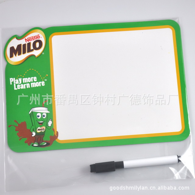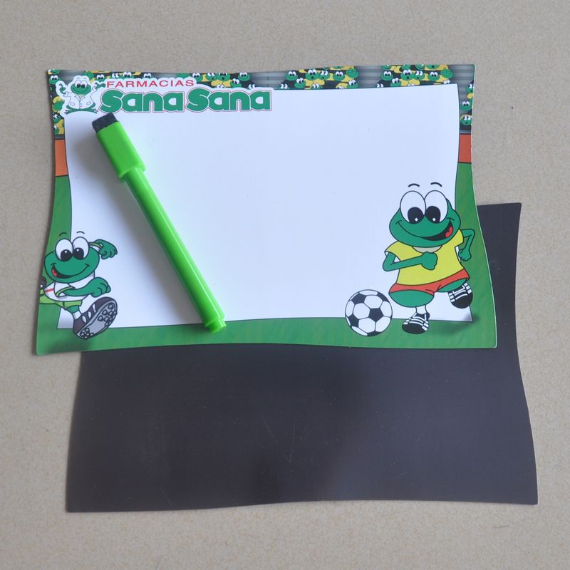 材质 | 软胶磁体+铜版纸+笔架+可擦笔 | 图案 | 可根据客户要求制作公司Logo和各种精美图案 |