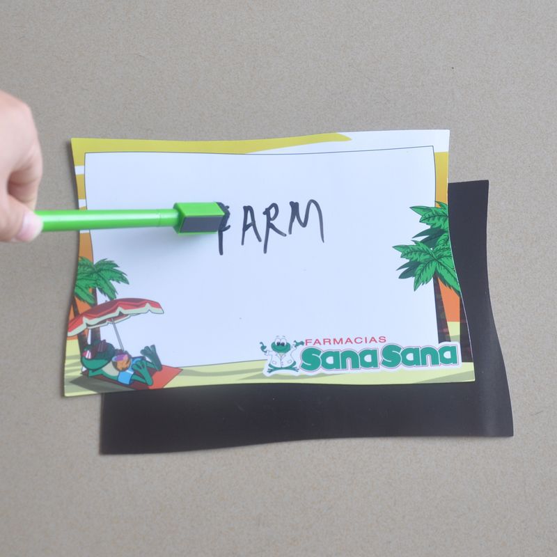 采用上面铜版纸四色彩印和下面软胶磁体+笔夹固定可擦笔制作而成,精美便携,可根据客户要求制作方形、圆形或其它形状。