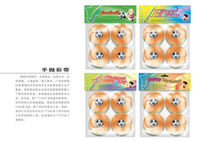 用手抛掷安全环保款式、规格多样,可印刷客人的LOGO并按照客人的装等,欢迎洽谈包装,有散装opp袋装纸盒